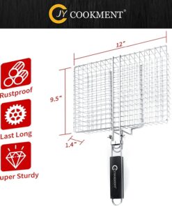 JY COOKMENT Stainless Steel Grill Basket with Removable Handle – BBQ Basket for Fish. Veggies & Steak. Dishwasher Safe