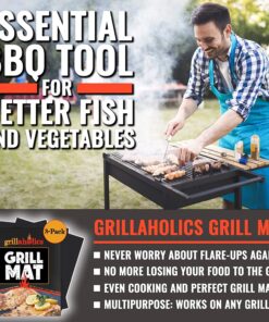 Grillaholics Grill Mat – Set of 3 Heavy Duty BBQ Grill Mats – Non Stick. Reusable and Dishwasher Safe Barbecue Grilling Accessories – Lifetime Manufacturers Warranty