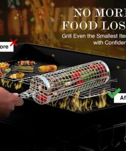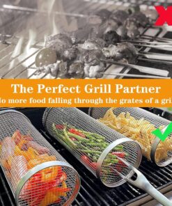 Grill Well 2.0 – Rolling Grill Basket (2 Pcs) for Vegetables. Kebob. Shrimp | BBQ Grilling Accessories for Outdoor Cooking & Camping | Perfect Father’S Day Gift for Men. Step Dad. Grandpa