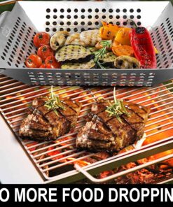 GRILLART Grill Basket Heavy Duty -Large Grill Baskets for Outdoor Grill Vegetables -Stainless Steel Veggie Grilling Basket/Pan – Lasting Grill Vegetable Basket BBQ Grill Accessories. Gifts for Dad Men