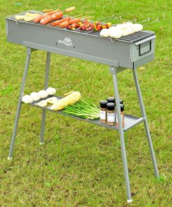 WILLBBQ Commercial Quality Portable Charcoal Grills Multiple Size Hibachi BBQ Lamb Skewer Folded Camping Barbecue Grill for Garden Backyard Party Picnic Travel Outdoor Cooking Use(31.6X7.1X5.1 Inch)
