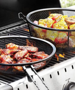 Outset 76182 Chef’S Jumbo Outdoor Grill Basket and Skillet with Removable Handles
