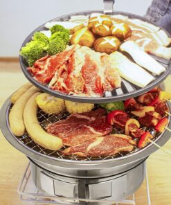 Puraville Charcoal Barbecue Grill. 13.7 Inches Non-Stick Korean BBQ Grill. Portable Stainless Steel Charcoal Stove for Home Party Outdoor Camping