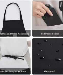2 Pack Adjustable Bib Apron Waterdrop Resistant with 2 Pockets Cooking Kitchen Aprons for Women Men Chef. Black