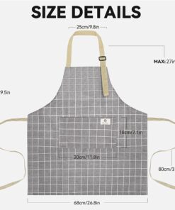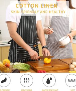 2 Pieces Linen Cooking Kitchen Apron for Women and Men Kitchen Bib Apron with Pocket Adjustable Soft Chef Apron