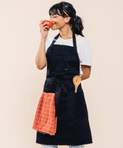 Caldo Daily Cotton Kitchen Apron for Cooking- Mens and Womens Professional Chef or Server Bib Apron – Adjustable Straps with Pockets and Towel Loop (Black)