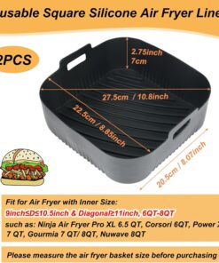 BYKITCHEN 9 Square Silicone Air Fryer Liners (Set of 2) – Reusable Trays for 6‑8QT Air Fryers. Cosori. Ninja. Gourmia & More