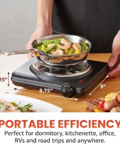 Elite Gourmet ESB100B Countertop Single Coiled Burner Electric Hot Plate. Temperature Control. Indicator Light. Easy to Clean. Black
