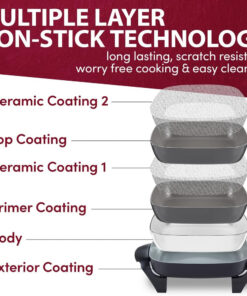 Elite Gourmet EG2212 12X12X2.15 Ceralastâ„¢ PFAS Free Ceramic Electric Skillet. Dishwasher Safe. Rapid Heat Up. 1200W. Dark Grey