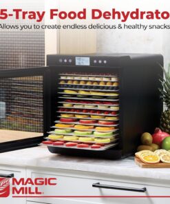 Magic Mill Food Dehydrator Machine – 800W. 15 XL Stainless Steel Trays. 48‑Hr Timer. 95°‑167°F for Jerky. Fruits & Veggies