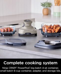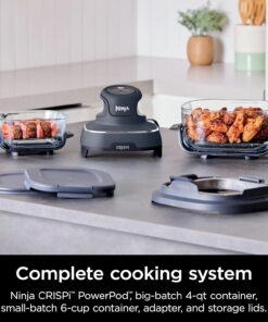 Ninja Crispi 4-In-1 Portable Glass Air Fryer Cooking System. 1500W. 4QT & 6-Cup Tempware Glass Containers with Storage Lids. Microwave. Freezer & Dishwasher Safe. Cyberspace Gray. FN101GY