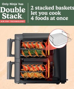 Ninja Air Fryer. 10QT Doublestack XL 2-Basket. Compact Design. Cooks 5Lb Whole Chicken. Feeds up to 8 People. 6-In-1 Air Fryer. Roast. Bake & More. Easy to Clean. Dishwasher Safe Parts. Grey. SL401