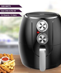 3.2-Quart Small Electric Air Fryer. Timer & Temp. Control (Black. Silver) (AF-300BK)
