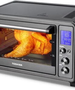 TOSHIBA AC25CEW-BS Large 6-Slice Convection Toaster Oven Countertop. 10-In-One with Toast. Pizza and Rotisserie. 1500W. Black Stainless Steel. Includes 6 Accessories