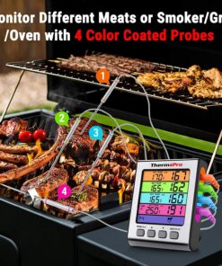 TP17H Digital Meat Thermometer with 4 Temperature Probes. HI/LOW Alarm Smoker Food Thermometer with Colored Backlit LCD. BBQ Thermometer for Cooking Grilling Kitchen Oven Barbecue Turkey
