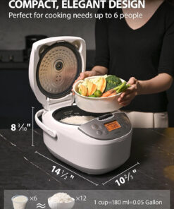 Toshiba Rice Cooker 6 Cup Uncooked – Japanese Rice Cooker with Fuzzy Logic Technology. 7 Cooking Functions. Digital Display. 2 Delay Timers and Auto Keep Warm. Non-Stick Inner Pot. White