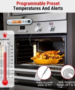TP610 Digital Meat Thermometer for Cooking. Rechargeable Instant Read Food Thermometer with Rotating LCD Screen. Waterproof Cooking Thermometer with Alarm for Grilling. Smoker. BBQ. Oven