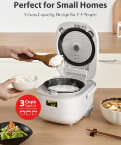 Toshiba Mini Rice Cooker. 3 Cups Uncooked Small Rice Cooker. Steamer & Warmer. with Fuzzy Logic and One-Touch Cooking. 24 Hour Delay Timer and Auto Keep Warm Feature. White
