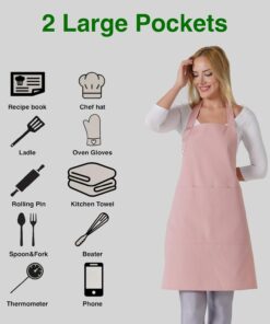 TOSHE Kitchen Apron Waterdrop Resistant Cotton Apron with Adjustable Aprons for Women with Pockets 10 Color Option Cooking Powder Pink Apron (Powder Pink)