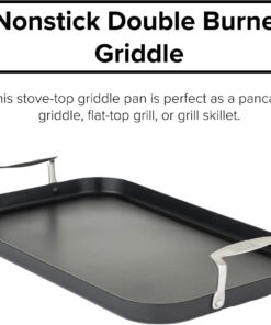 Viking Non Stick Double Burner Griddle. Hard Anodized Nonstick Kitchen Cookware Grill Pan with Handles. Oven Safe. Works on Electronic. Ceramic. and Gas Stove Tops. 19 X 11 Inch