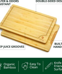 Wooden Cutting Boards for Kitchen Meal Prep & Serving – Bamboo Wood Cutting Board Set – Charcuterie & Chopping Butcher Block for Meat – Kitchen Gadgets Gift