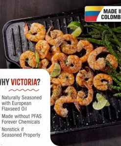 Victoria 20-By-14-Inch Rectangular Cast Iron Griddle. Preseasoned Reversible Griddle