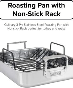 Viking Culinary 3-Ply Stainless Steel Roasting Pan. Includes a Nonstick Rack. Dishwasher. Oven Safe. Works on All Cooktops Including Induction