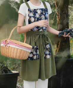 Vintage Pinafore Apron Dress for Women with Pockets Cute Floral Chef Aprons for Kitchen Cooking Baking Gardening