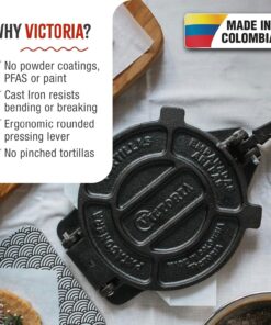 Victoria 8 Inches Cast Iron Tortilla Press. Roti Maker and Tortilladora. Pataconera Seasoned with Flaxseed Oil. Made in Colombia