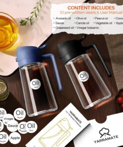 YRRAMATE 16oz Glass Olive Oil Sprayer – 2‑in‑1 Dispenser with Stickers & Portion Control (Navy)