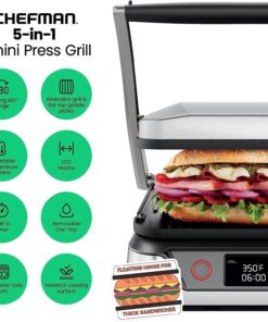 5-In-1 Digital Panini Press Grill Sandwich Maker and Griddle Grill Combo with Removable. Reversible Dishwasher-Safe Grilling Plates. Opens 180° for Indoor BBQ or Flat Top Grill