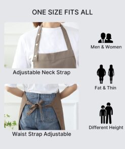 Aprons for Women Men BBQ Chef Cooking Artist Water Drop Resistant Canvas Adjustable Kitchen Apron with Pockets for Unisex Grill Baking Painting Art Stylist Dishwashing Comfortable Aprons (Khaki)