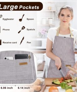 2 Pack Apron. Cotton Cooking Kitchen Aprons. Adjustable Bib Apron with 2 Pockets for Men Women Chef Aprons.(Black/Brown Stripes)