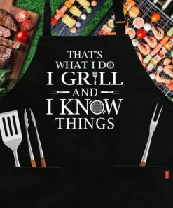 Funny Grilling Aprons for Men – BBQ Cooking Apron with 2 Pockets. Adjustable Neck Strap and 40 Long Ties – That’S What I Do I Grill and I Know Things