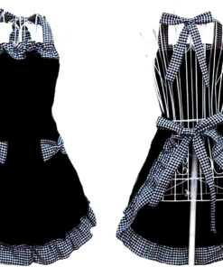 Cute Retro Lovely Vintage Ladies Kitchen Flirty Vintage Aprons for Women Girls with Pockets for Mothers Day Gift (Black)