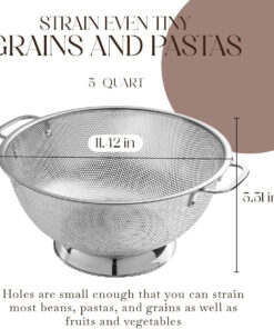 Bellemain Colander for Kitchen – 5 Qt Stainless Steel Strainer with Handle – 18/8 Pasta Strainer Bowl for Pasta. Spaghetti. Vegetables. Fruit. and Pot Draining – Stainless Steel Colander