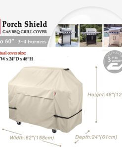 Porch Shield 62W X 24D X 48H Inch Premium Gas Grill Cover up to 60 Inch – Waterproof 600D BBQ Covers for Weber. Brinkmann. Char-Broil and More. Light Tan