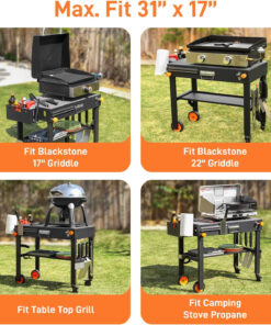 Portable Grill Cart for Weber Q1000. Q2000 Series Gas Grills and Blackstone 17 22 Table Top Griddles. Portable Griddle Stand