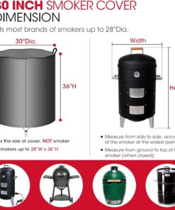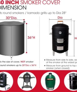 Unicook round Smoker Cover 30 Inch. Heavy Duty Waterproof Charcoal Kettle BBQ Grill Cover. Fade Resistant Barrel Protector. Fits Weber Char-Griller Akorn Kamado and More. 30 Dia X 36 H