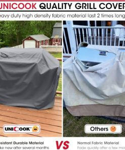 Unicook Grill Cover for Outdoor Grill. 60 Inch BBQ Cover. Heavy Duty Waterproof. Fade Resistant. Weather Resistant. Anti-Rip. Gas Grill Cover Compatible with Weber. Char-Broil. Nexgrill. Etc. Grey
