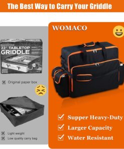 WOMACO 22 Inch Griddle Carry Bag for Blackstone 22 Griddle with Hood Lid. Heavy Duty Portable Tabletop Griddle Carrying Bag for Travel. Weather Resistant BBQ Grill Carry Case with Shoulder Strap