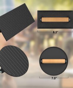 Wildone Burger Press. 7 round & 8.2X4.3 Rectangle Heavy-Duty Cast Iron Smash Bacon Press Meat Steak with Wood Handle for Griddle. Sandwich. Panini. Nonstick Pan
