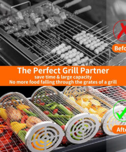Wrakus Rolling Grilling Baskets for Outdoor – Grill Grate Charcoal round BBQ Stainless Steel Basket Campfire Grid Camping Picnic Cookware 1 (2PCS 300 * 90 90Mm)