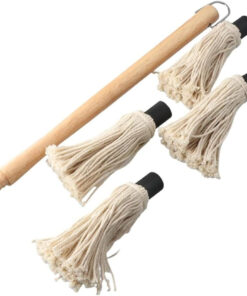 Wooden Long Handle BBQ Basting Mop with 4 Extra Replacement Heads. Barbecue Supplies Grill Basting Mop for BBQ Grilling Smoking Steak