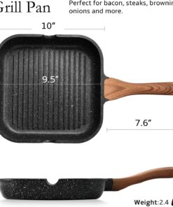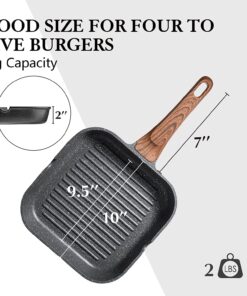 Nonstick Grill Pan for Stove Tops. Versatile Griddle with Pour Spouts. Square Big Cooking Surface. Durable Skillet Indoor & Outdoor Grilling. PFOA Free. 9.5 Inch