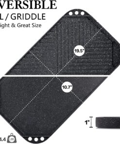 Nonstick Griddle Grill Pan. Pro-Grid Reversible Grill & Griddle Pan. Two Burner Cast Aluminum Griddle. Portable for Indoor Stovetop or Outdoor Camping BBQ. 19.5 X 10.7