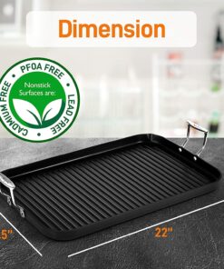 Nonstick Stove Top Grill Pan – PTFE/PFOA/PFOS Free Need Two Burners 20 X 13 Hard-Anodized Non Stick Grill & Griddle Pan – Kitchen Cookware. Dishwasher Safe NCGRP59