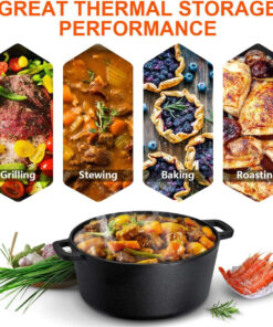Overmont 2 in 1 Pre Seasoned Dutch Oven with Skillet Lid for Induction. Electric. Grill. Stovetop. BBQ. Camping (5 Quart)