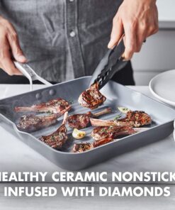 Paris Pro Hard Anodized Healthy Ceramic Nonstick. 11 Square Grill Pan. Pfas-Free. Dishwasher Safe. Grey