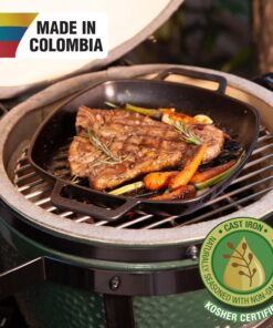 Cast Iron round Grill Pan with Double Loop Handles. Made in Colombia. 10 Inches